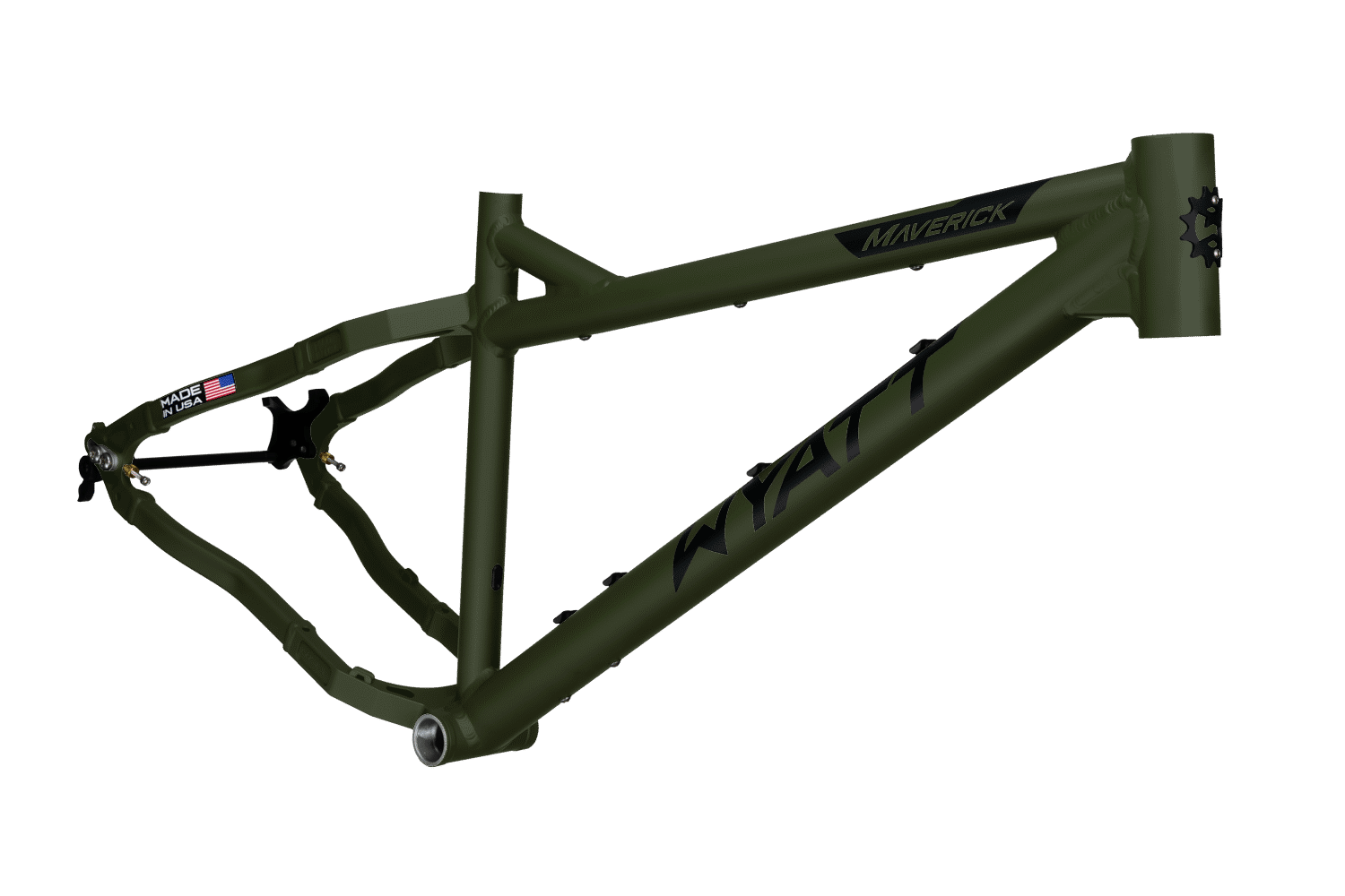 The Maverick frame is an American-made fat bike frame with modern trail geometry designed for having fun whenever and wherever you ride. The Maverick frame is 100% made in the USA and manufactured in Bangor, WI. Includes sliders, rear axle, hardware, chainstay guard & cable guides.